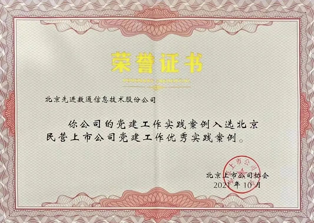 近期,北京上市公司协会授予北京SG胜游(中国)信息技术股份公司荣誉证书,SG胜游(中国)党建工作实践入选北京民营上市公司党建工作优秀实践案例,相关党建活动已收录在《北京民营上市公司党建工作优秀实践案例汇编》。